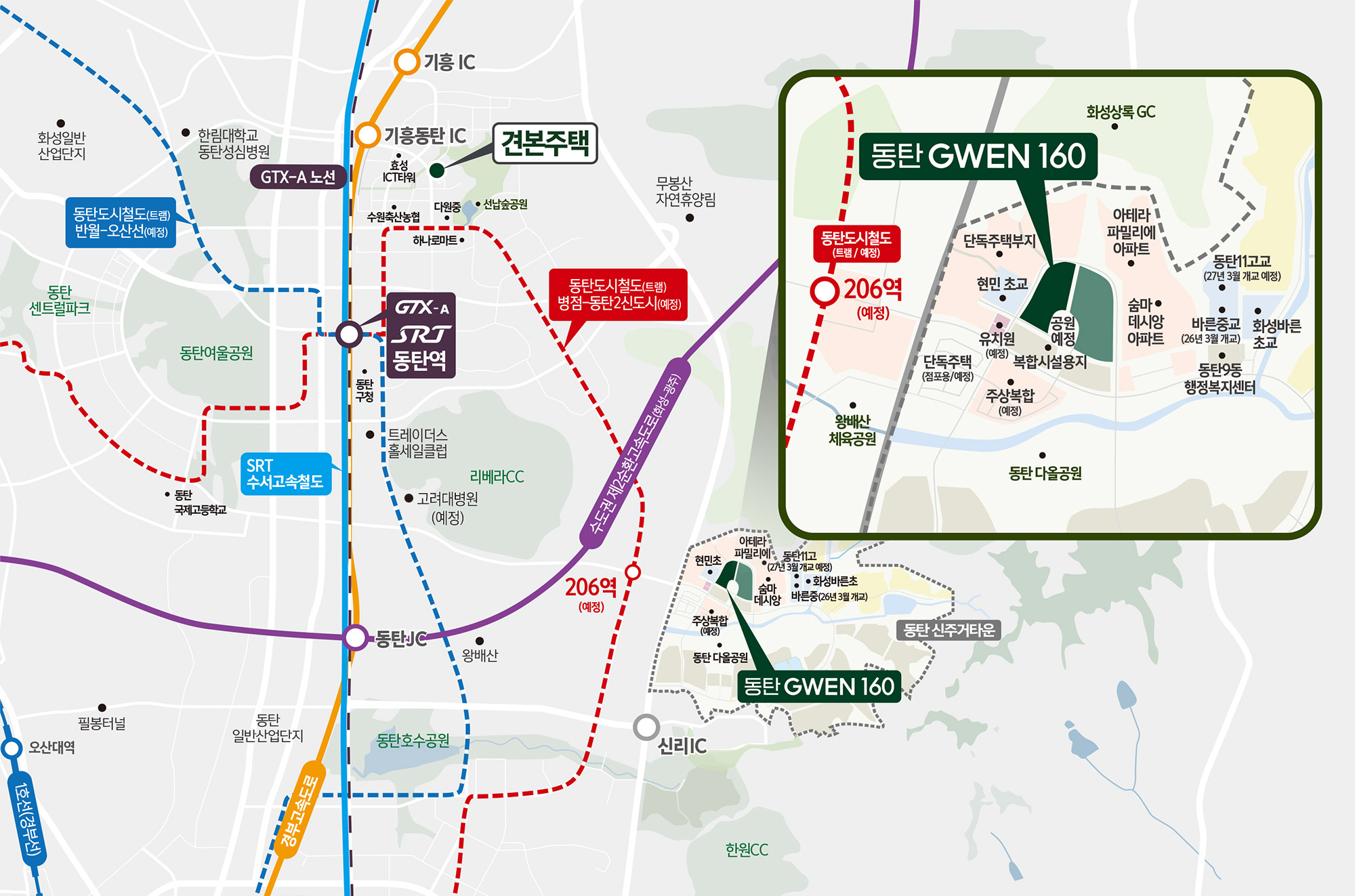ⓘ 상기 개발계획도 내용상에 기재된 교통, 학교, 분양 등의 개발계획은 사업진행과정 및